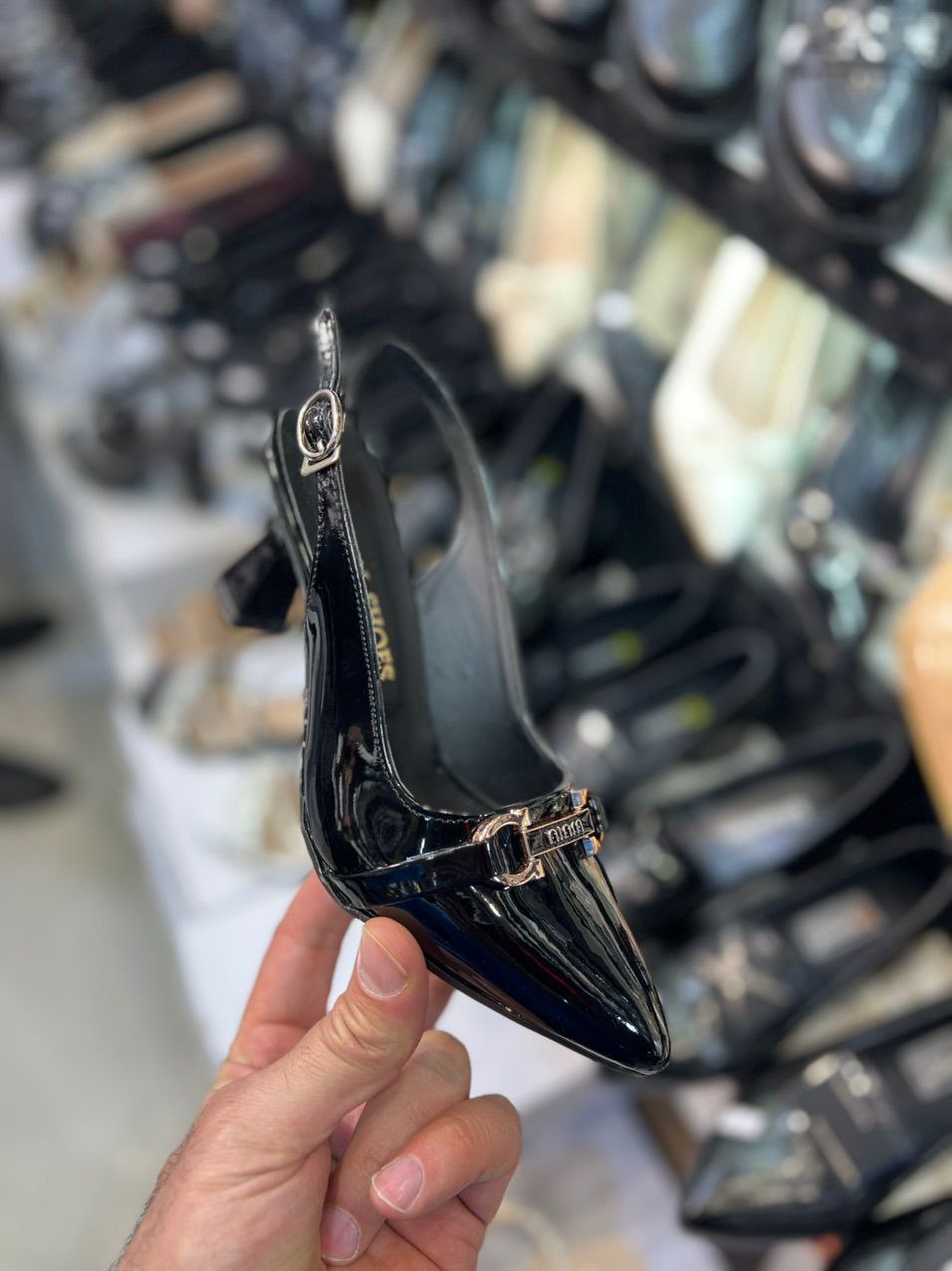 کفش مجلسی و پاشنه دار زنانه رویه چرم ورنی کیفیت عالی زیره دلتا 7سانت