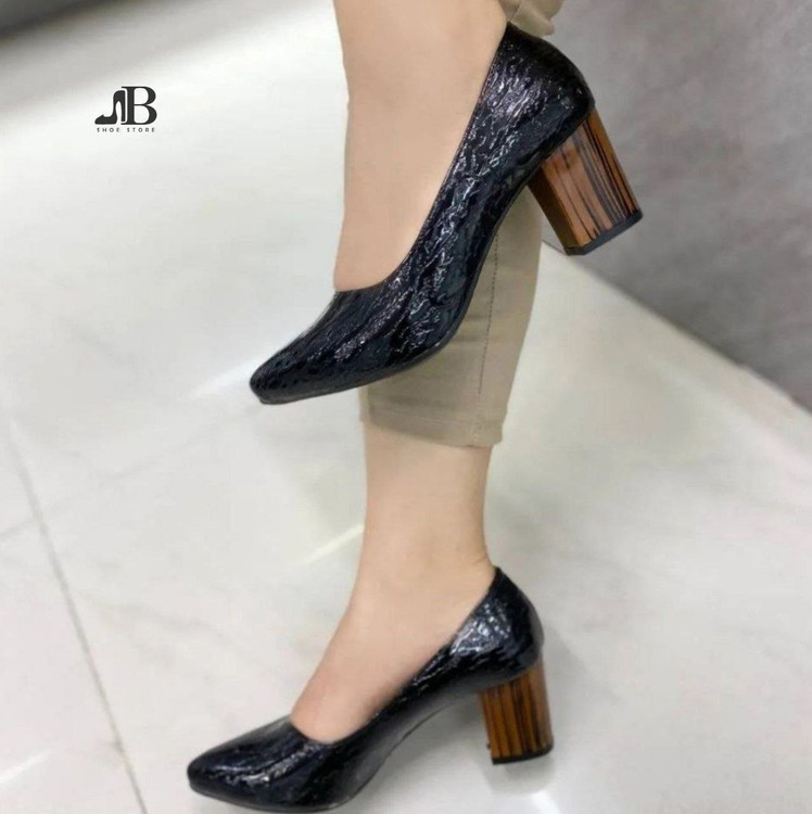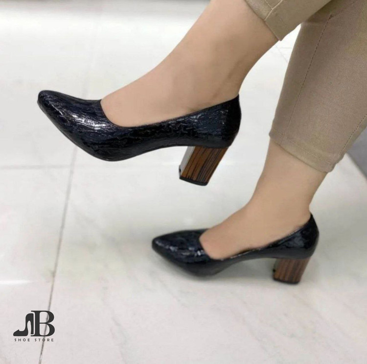 کفش پاشنه بلند زنانه رویه ورنی طرحدار زیره پاشنه دلتا