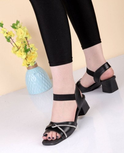 کفش صندل زنانه نگین دار پاشنه سه سانت مشکی