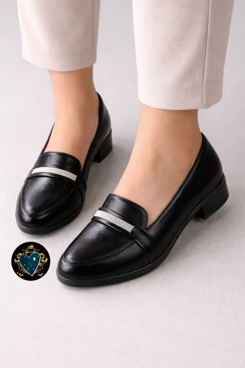 کفش کالج زنانه مجلسی رویه مدل نگین دار کیفیت عالی